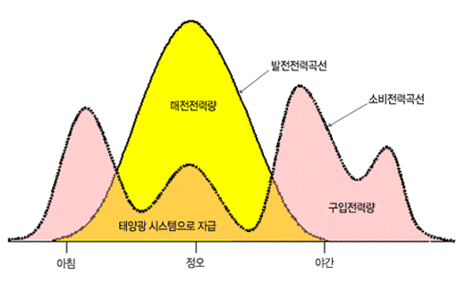 낮에 사용하고 남는 전기는 한전으로 보내고 밤에 부족한 전기를 받아서 사용합니다.